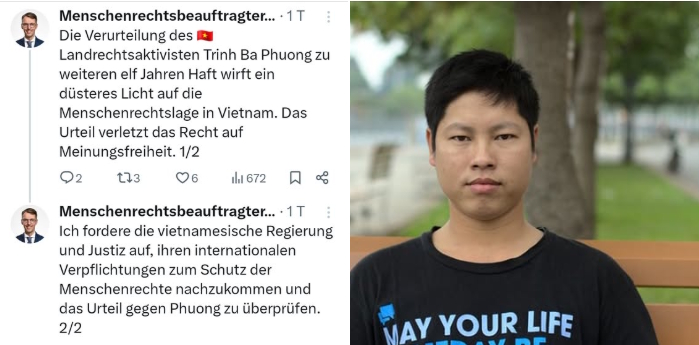 *** Der Menschenrechtsbeauftragte der deutschen Bundesregierung, Lars Castellucci, sagte zur Verurteilung des Landrechtsaktivisten Trinh Ba Phuong zu weiteren 11 Jahren Haft: ***